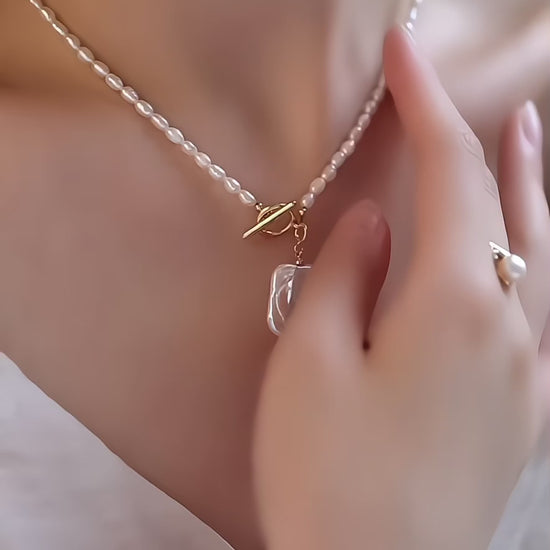 A graceful freshwater pearl necklace with a square-shaped Baroque pearl pendant. A timeless piece, perfect for women who appreciate elegance and individuality. Celebrate your unique beauty with this stunning design.
