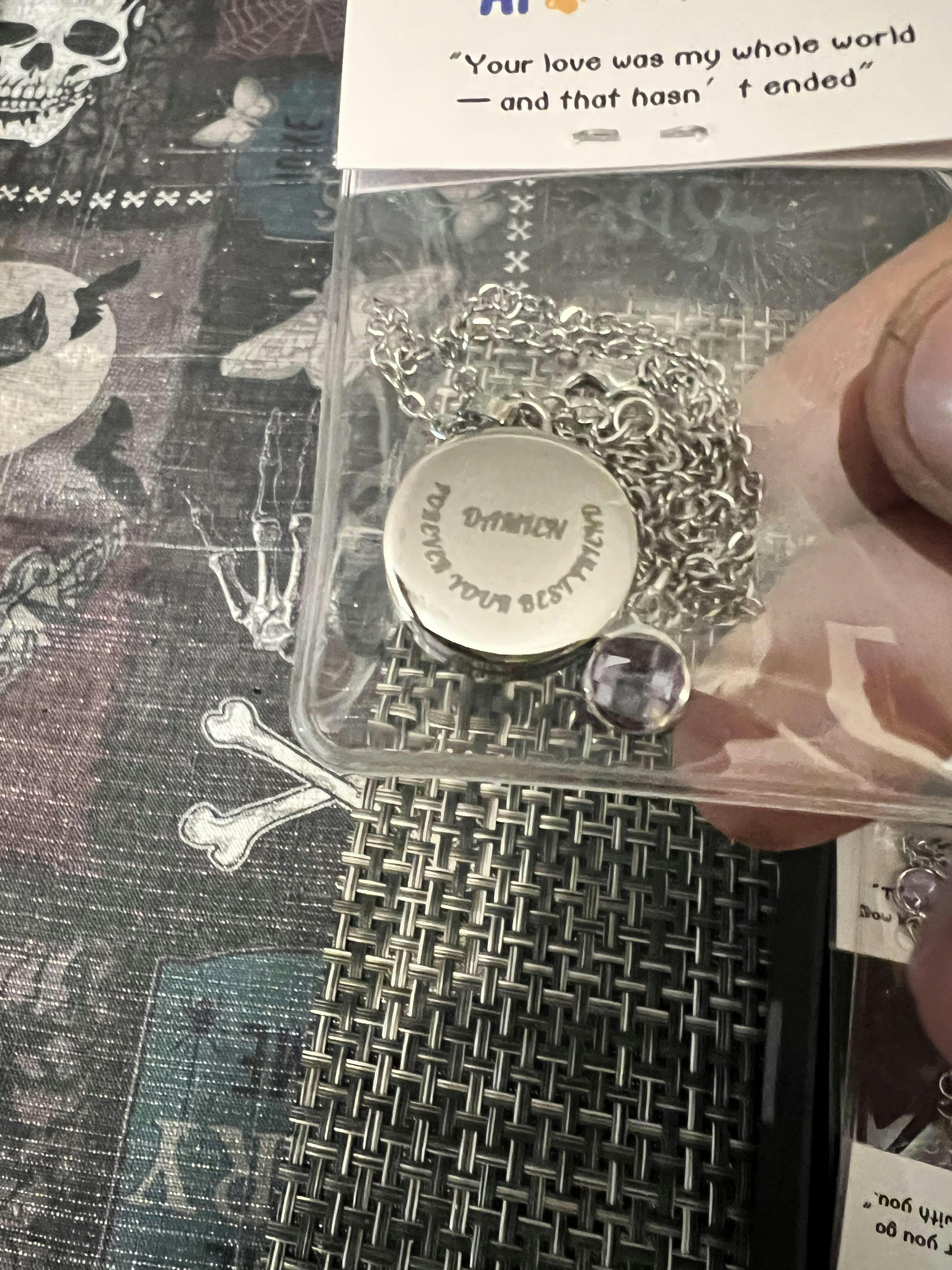 We carefully engrave your custom design, assemble the pendant, and ensure it’s made to last—with a special compartment inside to hold fur, whiskers, or other keepsakes.